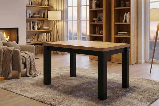 Stół skrzyniowo-ramowy wykonany z okleiny dębowej Wymiary: 120x80 + 3x55 Wybarwienie: blat – Dąb Naturalny Matowy; ...